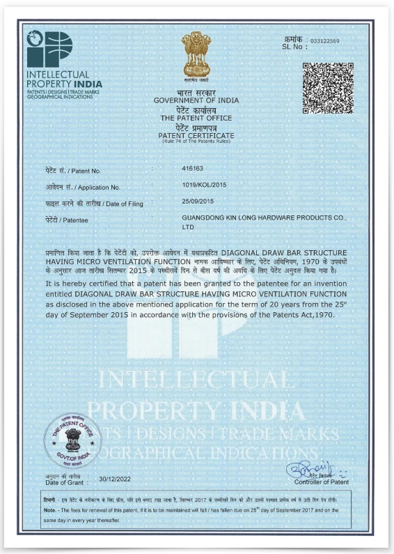 近日,廣東快猫短视频在线观看WWW.快猫视频製品股份有限公司分別獲得中華人民共和國國家知識產權局、印度專利局、沙特阿拉伯專利局頒發的發明專利證書,